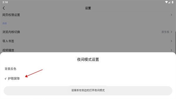 在背景反色功能弹出的选项列表里,选择护眼屏障这一选项,就能顺利开启护眼模式了。