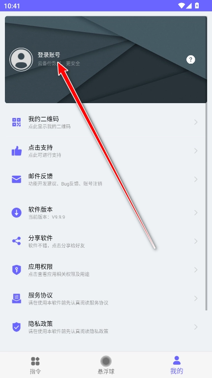 点击登录账号。