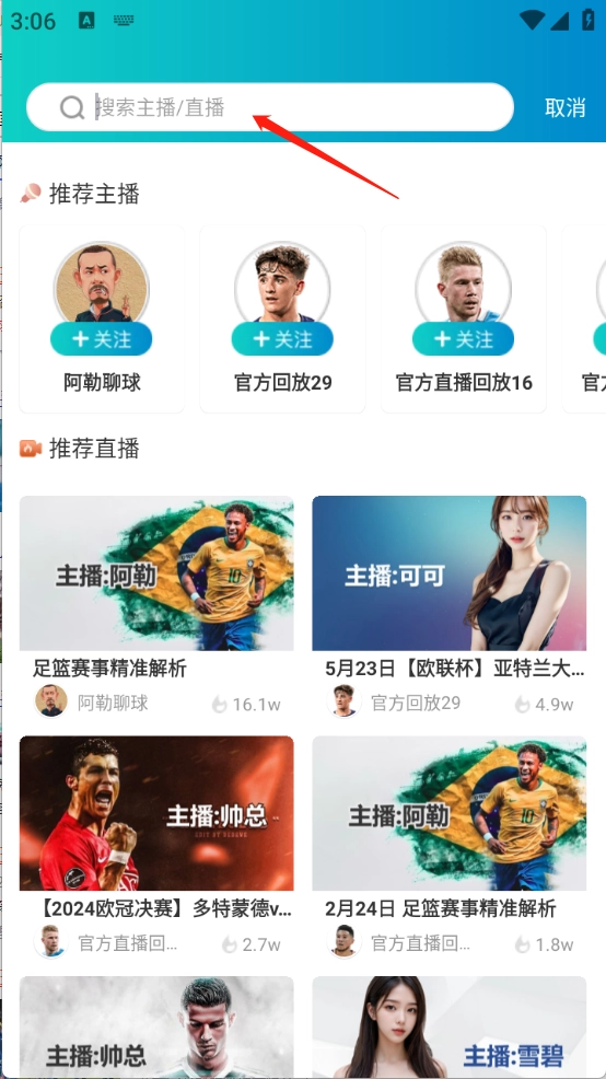 也可以通过搜索关键词查找想看的体育赛事。