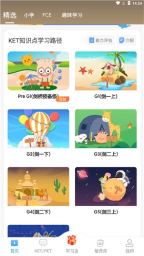 软件还提供了KET知识点学习路径,用户能够依据孩子的实际情况,挑选适配的阶段开展学习。
