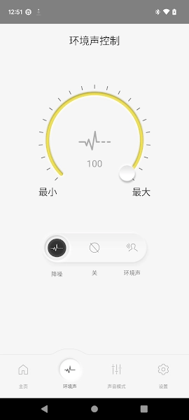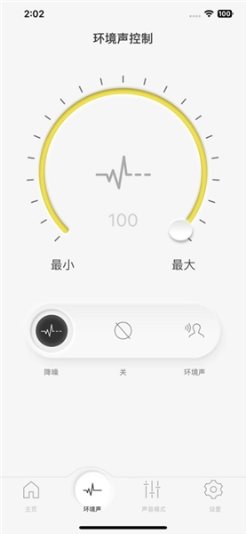 环境声控制功能支持100档调节,可灵活设置降噪强度与外部声音的拾取范围。