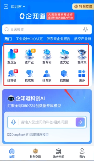 进入主界面后,能够借助查企业或者查产业之类的功能来检索所需的信息。