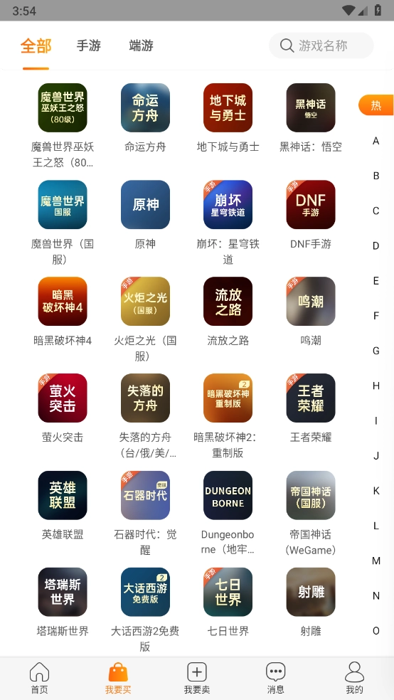 点击“我要买”板块,查看自己所需交易的游戏账号类型。