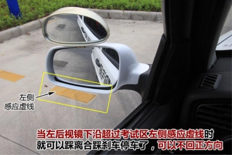 通过左右两侧的后视镜查看车身和库线是否保持平行,在确认车身处于直行状态后,马上把方向盘回正,再对车身与库线之间的距离做些微调。