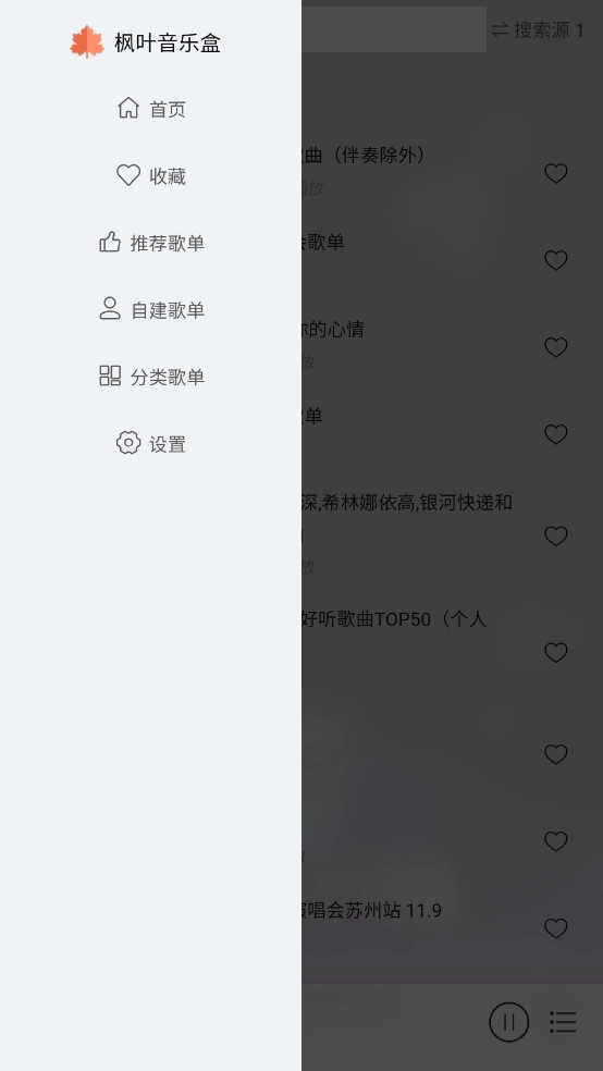 枫叶音乐盒是一款完全免费的开源音乐播放器,它整合了各大主流音乐平台的资源,只需输入关键词就能找到并播放你喜爱的歌曲。无需在不同软件间切换来收听不同歌手的作品,全网VIP歌曲都能在这里畅听无阻,还支持一键收藏功能,并且提供多种音质选项供你选择播放。