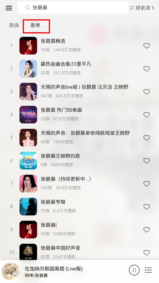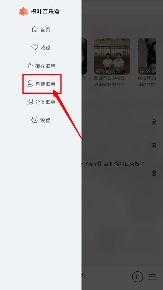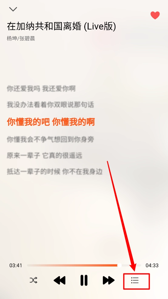 打开枫叶音乐盒,进入播放页面后,点击右下角的“列表”图标。