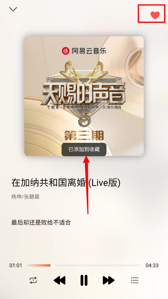 进入播放页,点击右上角收藏喜欢的歌曲。