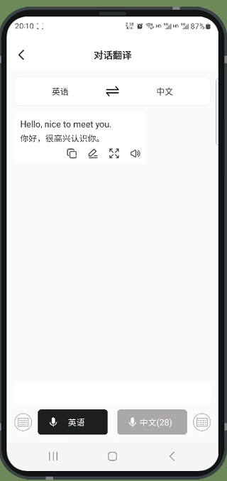 可以识别两种语言,能实现你说一句、我翻译一句,我说一句、你翻译一句的简单交流对话。