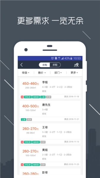 客户管理中心不仅提供了丰富的需求资源,还对这些资源进行了求购与求租的分类。