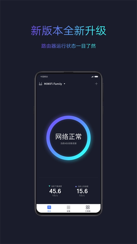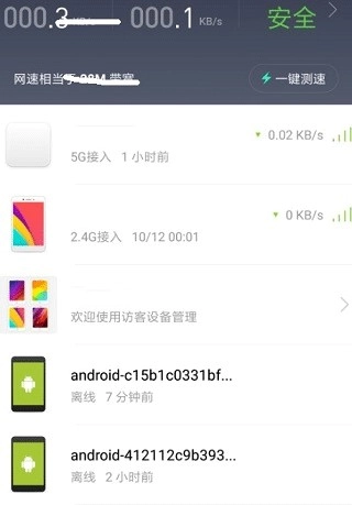 网络测速功能:具备一键测速能力,是一款便捷轻便的Wi-Fi测速检测工具,能够随时随地测试当前所连接Wi-Fi的速度以及安全状况,无论连接的是不是小米路由器都能正常使用;还有深度测速模式,通过分段检测的方式,有助于找出网络存在的瓶颈问题,支持对手机到小米路由器的局域网速度、小米路由器到互联网的外网速度进行测量,并且会给出相应的优化建议。