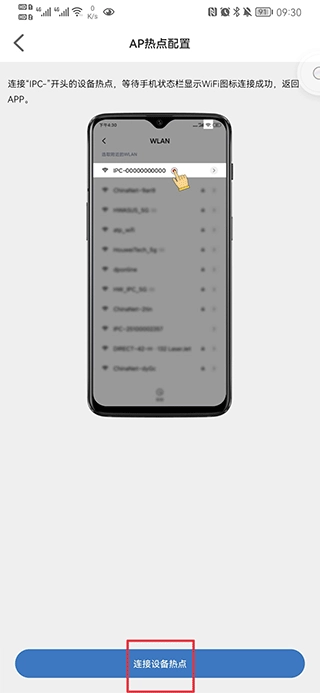 连接以ipc-开头的WiFi后,点击“连接设备热点”按钮,等设备连接成功就完成了。