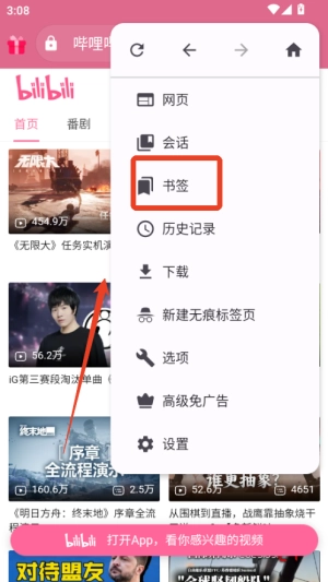 浏览网页时碰到心仪的页面,点击右上角的三个点,接着选择书签选项,就能把网址收藏起来,这样以后想再看时一键就能重新打开,十分便捷。