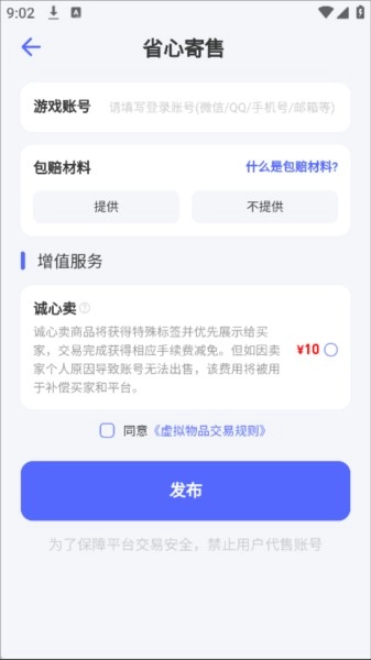 神仙代售给大家推荐神仙代售,这是一款超好用的系统工具类手机应用,页面简洁清晰,操作简单便捷。大家能放心在此采购,即便有不需要的账号,也能在这上面售卖。我们提供多种交易方式,整体操作相当简便。神仙代售会在软件内直接公示相关信息。不管您是购买游戏物品,还是出售游戏资产,我们都会竭诚为您提供最优质的服务。除了作为出色的交易平台,神仙代售对于违规产品和行为,都会予以严厉打击。感兴趣的小伙伴,赶紧下载体验一下吧!