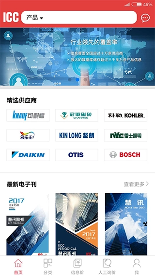 产品分类一目了然,搜索便捷高效,咨询信息能及时推送提醒,系统消息也可实时同步告知。