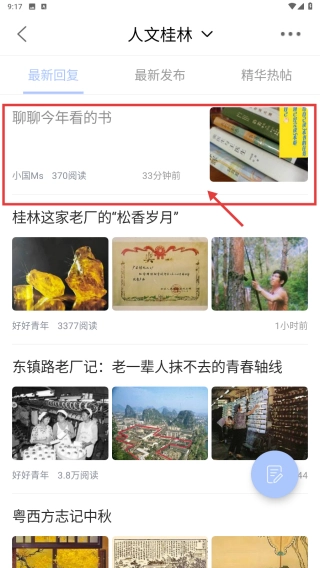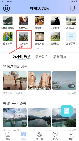 在论坛页面,点击人文桂林板块,即可进入该板块的帖子列表页面。