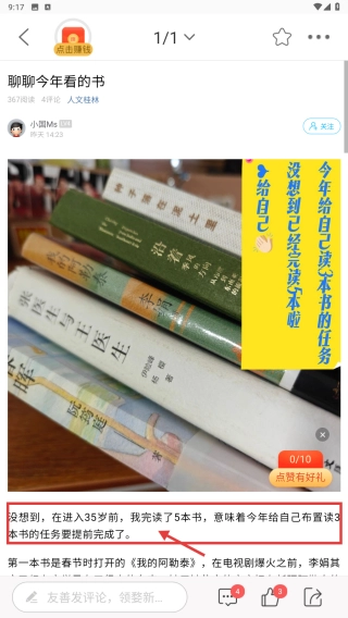 选择聊聊今年看的书帖子条目,进入帖子详情页面。