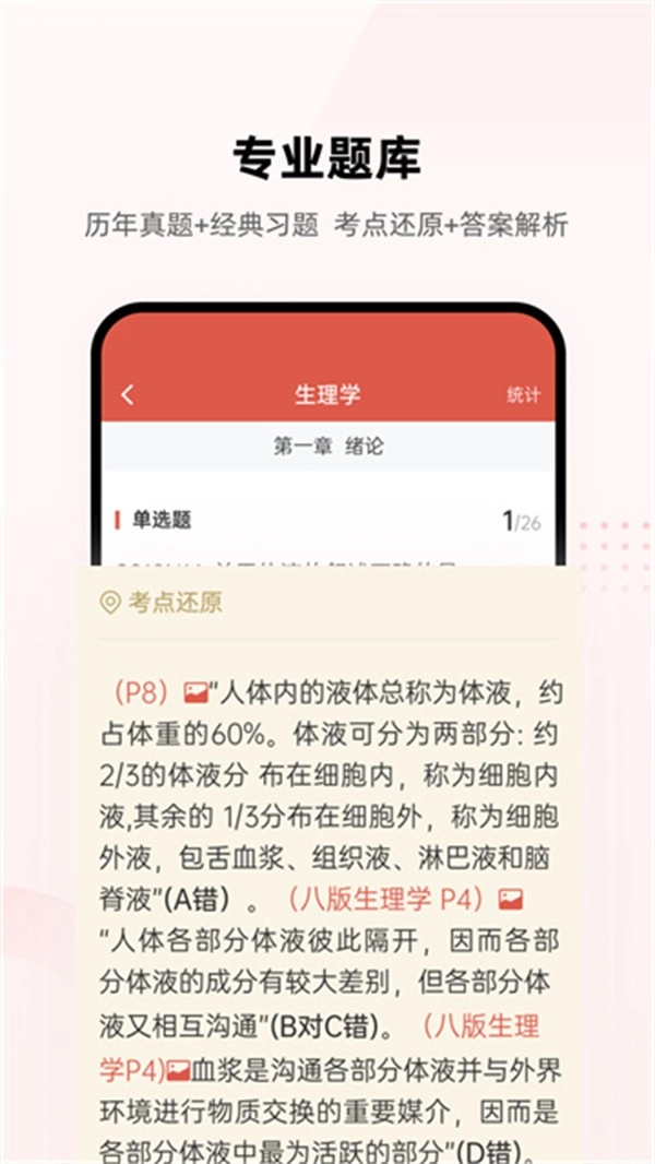 题库权威性突出:不仅完整收录真题且保持实时更新,同步练习题均由专业团队严格筛选,考点梳理紧密贴合医学考研大纲,全方位保障备考内容的精准度与针对性,切实帮助考生实现高效复习。