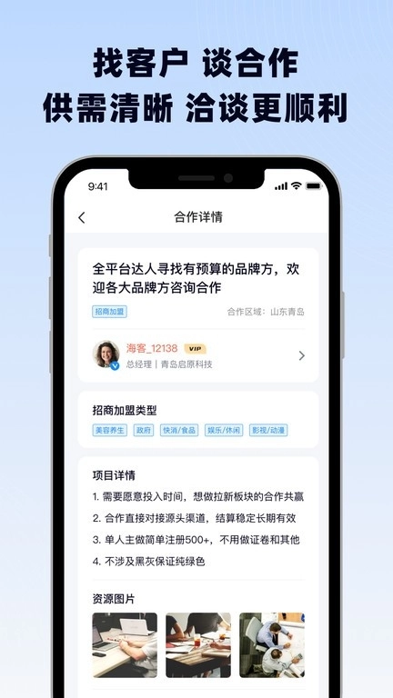 海客信联是一款面向现代商务场景打造的办公软件,搭载由智能商务引擎AI驱动的供需匹配系统,还具备智能日程管理系统可自动优化会议安排。平台会不断依据用户反馈优化使用体验,坚持双周迭代的更新节奏,更高效地保障用户效益,感兴趣的朋友们快来体验吧!