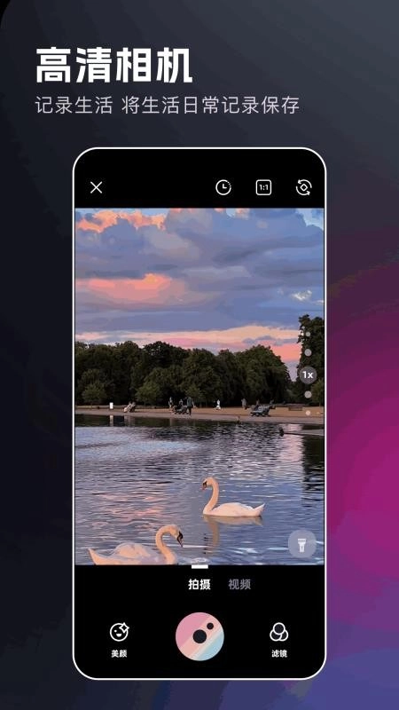 软件支持用户以高清画质记录日常日程,同时具备高清美颜功能,能清晰拍摄并留存生活中的精彩瞬间。