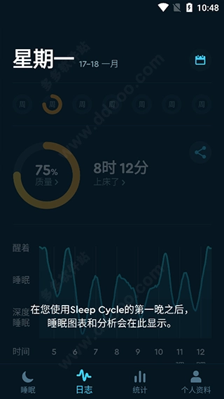 在日志中可看到自己的睡眠图表和分析。