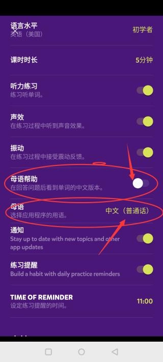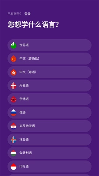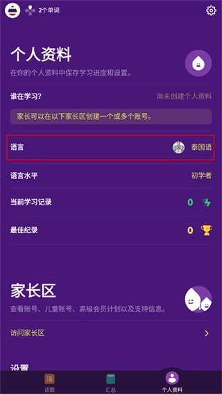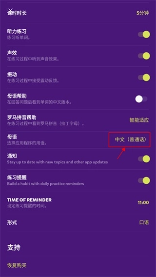 在语言界面选择你想学习的语言,点击即可切换。