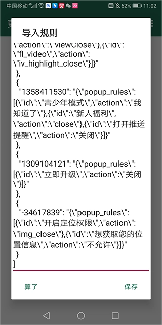 最后在软件界面里,我们得长按软件图标,这样就会弹出输入框,接着要在输入框中填写自定义规则,把想添加的效果对应的代码复制进去,点击保存就能完成自定义规则的添加了。