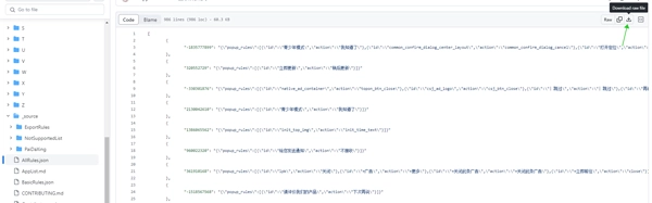 正如上图所示,用户只需关注json格式的文件即可,而在这三个json文件里,用户仅需留意所有规则代码文件。之后点击右侧的文件,完成文件操作就可以了。