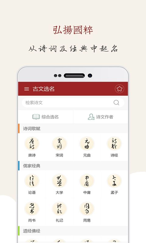 为你运用古文来选名,从古诗、儒家经典、道经等各类典籍中为你挑选名字。