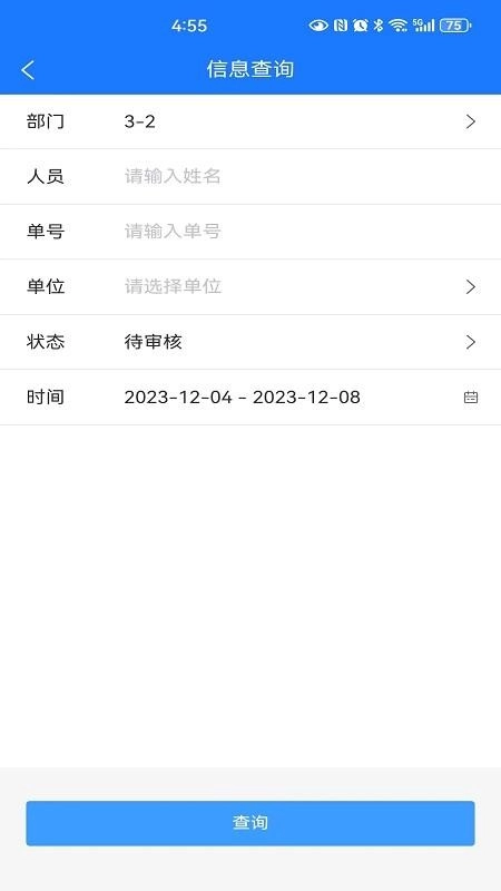 进行信息查询时,只需选择对应部门、填写基础信息并设定时间,就能一键完成快速查询。