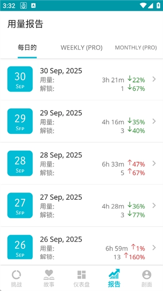 您的小时应用能为用户呈现其应用使用情况的每日、每周及每月详尽报告。每日使用报告借助合并的报告通知,对各应用的使用状况进行查看。针对高级用户,还提供导出每周和每月报告PDF版本的选项。