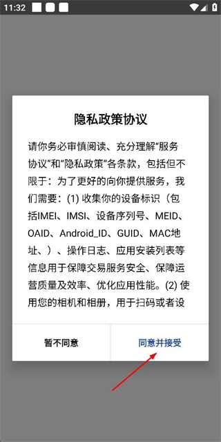在用户协议和隐私政策弹窗里点击同意并接受相关条款,即可进入登录页面。