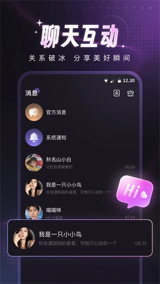 赫兹交友软件最新版赫兹交友软件的最新版本,是一款独具创新性风格的手机社交聊天应用。在这款软件里,用户能够借助语音方式展开聊天,通过发出声音的频率,匹配到与自己同频的好友,随即就能直接畅聊,如此一来,便能轻松结交到众多志同道合的朋友。除此之外,该软件还为用户准备了极为丰富的话题房间,并且支持用户创建相应的聊天主题,有助于用户打发闲暇时光。