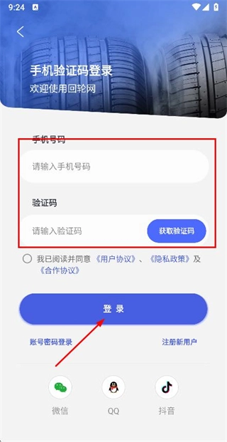 在登录页面输入手机号与验证码,勾选相关协议后,点击登录按钮即可完成账号登录流程。