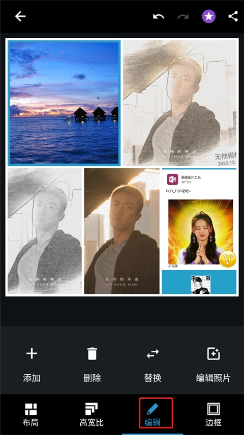 然后点击编辑按钮,你就能对拼图里的每一张图片进行修改,修改完成后,保存操作就可以了。