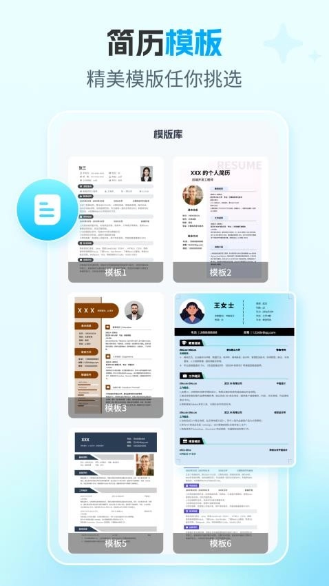 可以享受多种实用的简历制作服务,还能智能生成不同风格的简历主题。