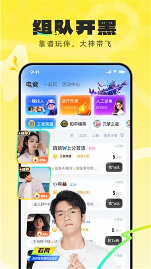汇聚各大热门玩家,即时遇见有趣的小伙伴,开黑约玩,秀操作,找到属于你的游戏CP!