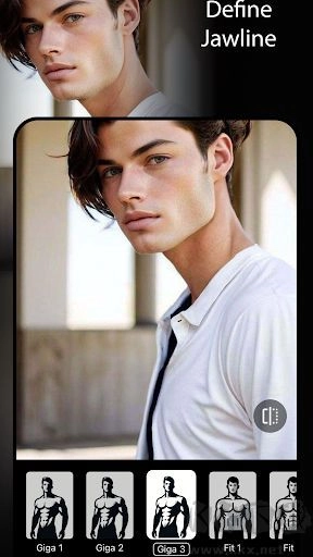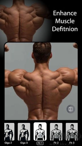 可以利用应用的工具,对照片中的肌肉效果进行强化,同时还能预览瘦身效果。