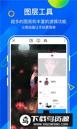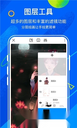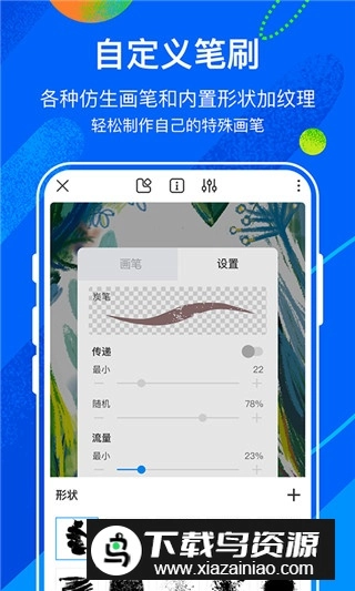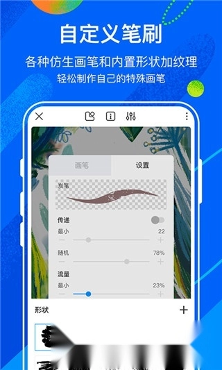 支持自定义绘画色彩,能够调节透明度、饱和度以及明暗度;可以轻松更换画笔和填充颜色。