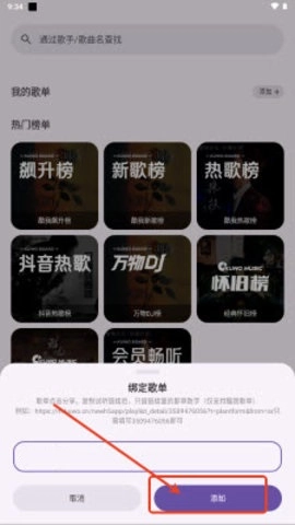接着把酷我音乐的歌单链接粘贴进去,点击“添加”按钮后,就能开始播放了。