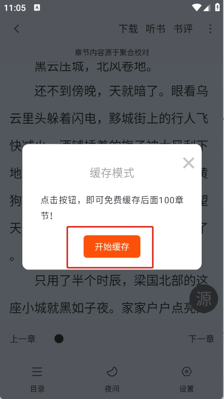 在出现的弹框中点击“开始缓存”即可。