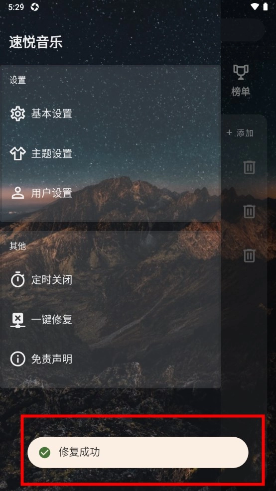 一键修复功能很实用,要是碰到搜索或者歌单方面的问题,简单操作一下就能解决,完全不用卸载重装。