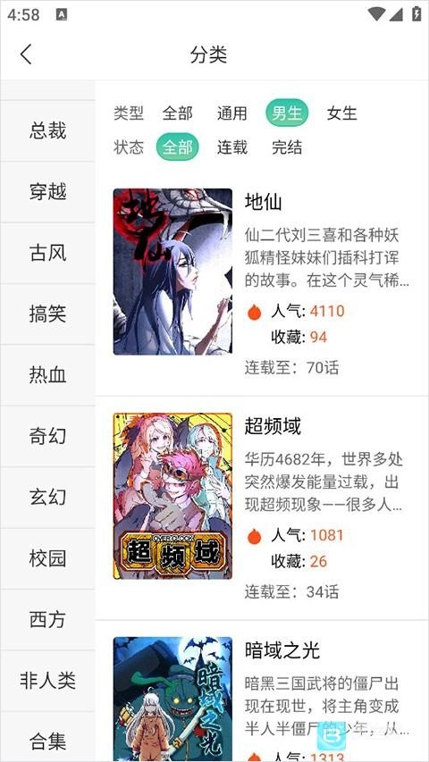 超综合分类:提供多样化的漫画分类导航,涵盖日本漫画、奇幻、都市漫画等类别,用户可免费选择。