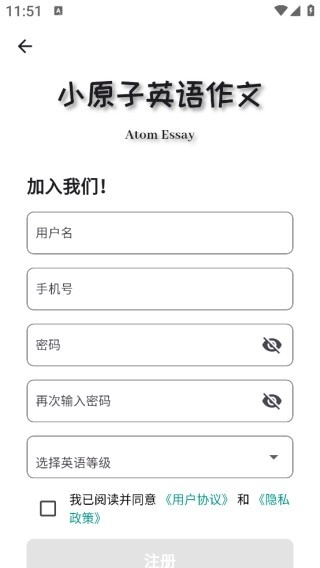 小原子英语作文手机版能直接获取最新版本的软件,进入时需要先同意隐私权限。