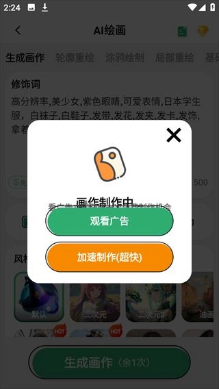 输入完成后点击生成画作,然后等待画作制作;