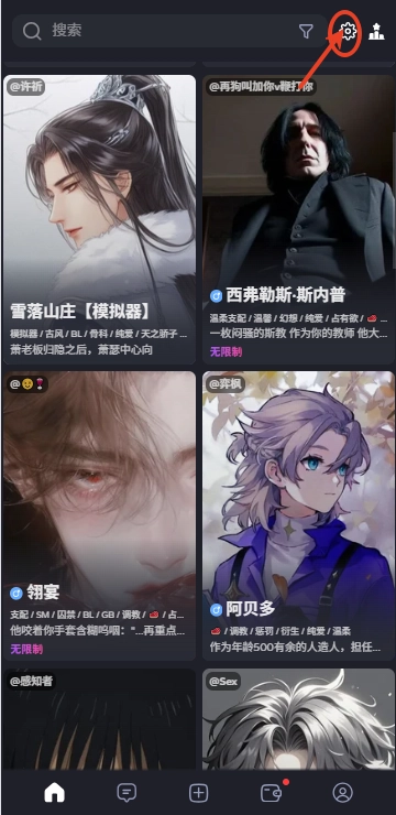 首先进入“搜索”页面,你可以挑选自己感兴趣的角色标签,或者直接输入关键词;等匹配完成后,就能开启对话了。另外,这里也允许你自行创建剧场,并邀请其他人参与进来。