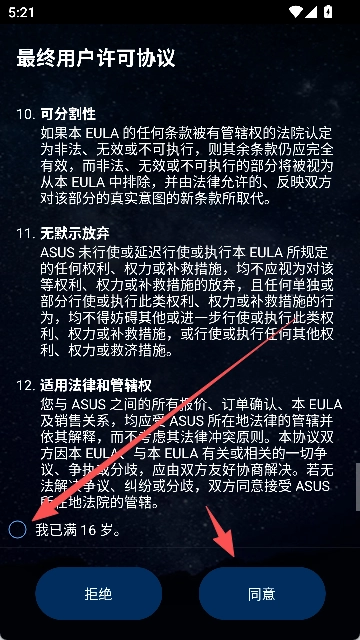 勾选【我已满16随】,点击【同意】