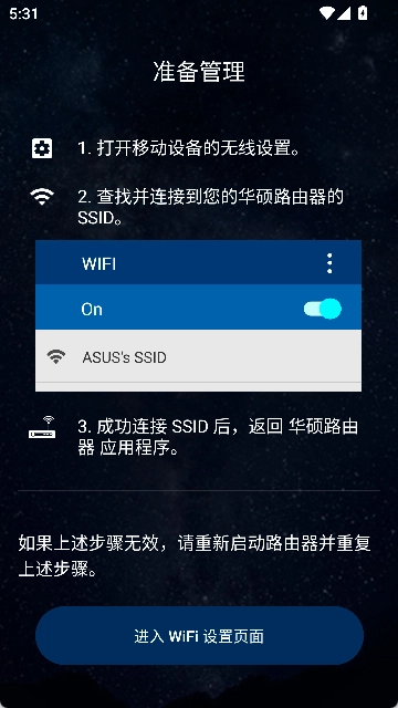 A:进入手机的无线设置界面,搜索并连接华硕路由器对应的SSID,之后返回该界面就可以完成配置了。