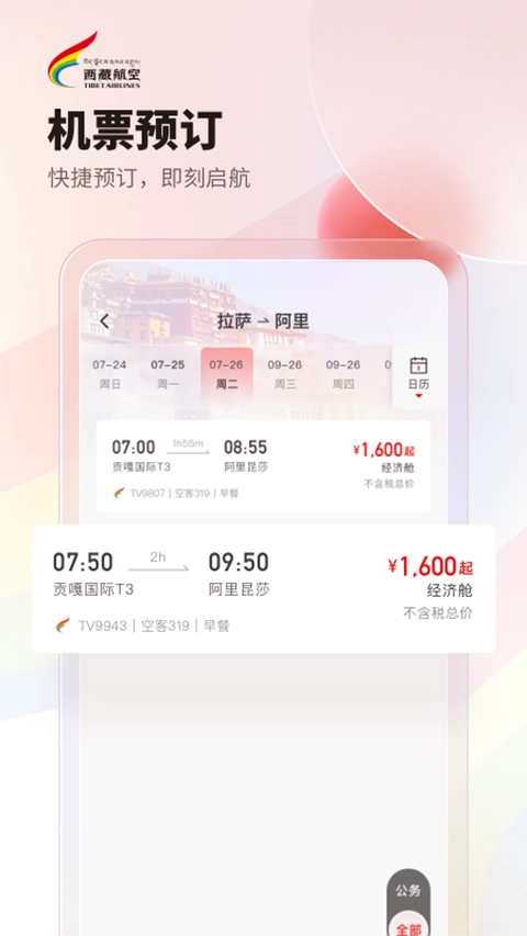 西藏航空新版本上线,更多服务更多可能!
