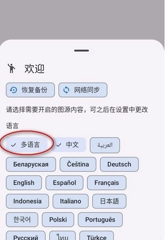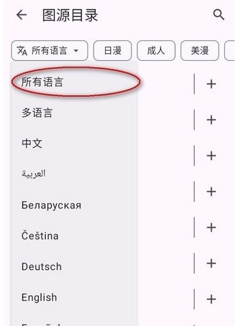 kotatsu默认就是中文,所以不用切换,根据系统语言自动适配。打开软件后,就可以选择图源,建议勾选多语言,这样就可以包括所有图源了。