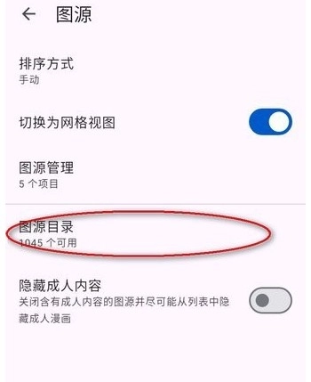 进入设置界面后,点击“图源”选项,接着选择“图源目录”,具体操作可参照图示。